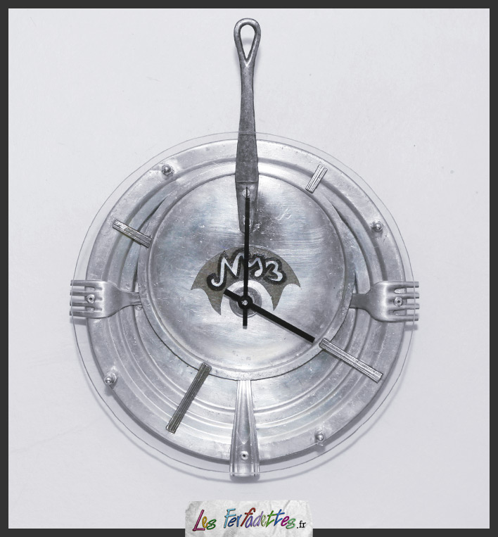 Une pendule toute simple 9 février 201421 juillet 2017Nicole B. Elle est bien lisible… Son charme, c’est le petit couvercle. Ø 25cm – Vendue !